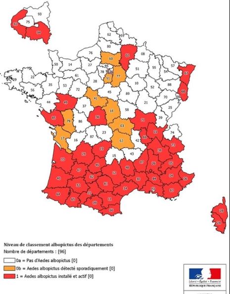Attention le moustique tigre débarque dans l'Oise. Selon la dernière carte du ministère des Solidarités et de la Santé, notre département est placé en vigilance orange. L’Aisne, est quant à lui classé rouge ! Le moustique tigre est connu pour, dans certaines conditions, transmettre le virus de la dengue, du chikungunya, du zika et de la fièvre jaune. Le préfecture de l’Oise a alors diffusé un communiqué pour une surveillance jusqu’au 31 décembre prochain. Petite info, sachez que les moustiques tigres sont attirés par les eaux stagnantes.
